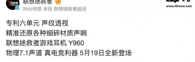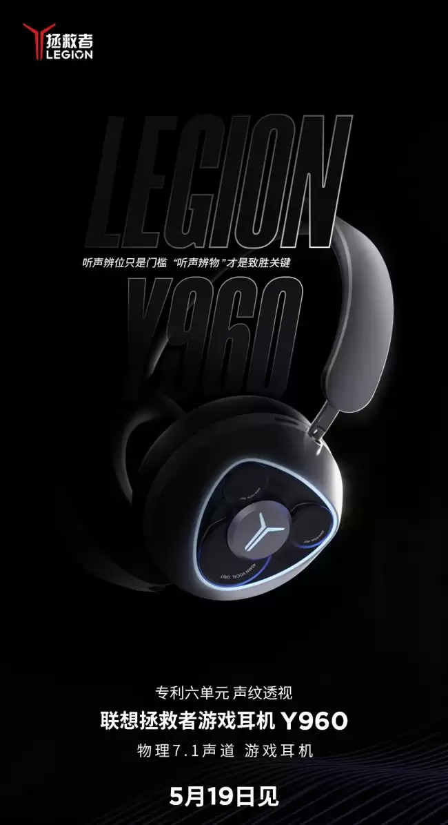 联想拯救者今天正式揭晓了新品——联想拯救者游戏耳机 Y960。这款耳机的一大亮点是支持物理7.1声道,发布日期定在了5月19日。