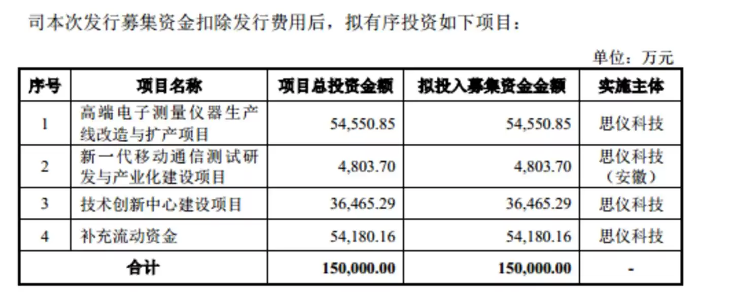 此次IPO,思仪科技计划募集资金15亿元,投向包括生产线改造、研发产业化、创新中心建设以及补充流动资金四个项目。