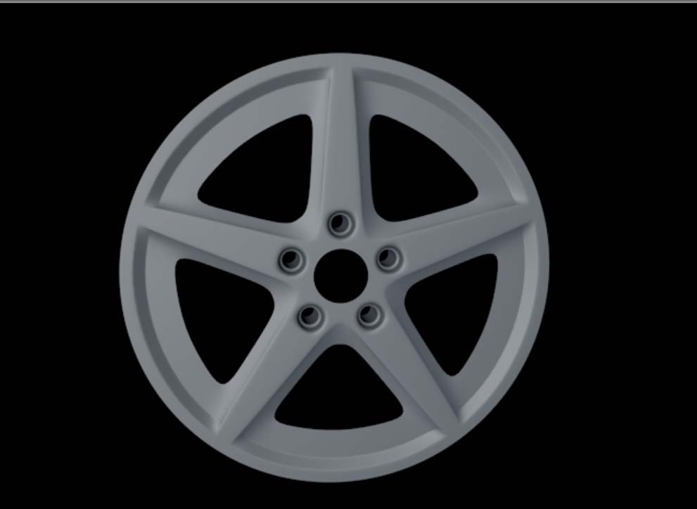 至此,五分之一份的轮毂主体建模就算基本完成了。别忘了,将之前使用的对称修改器也转化为可编辑多边形,让所有部分真正成为一个整体。