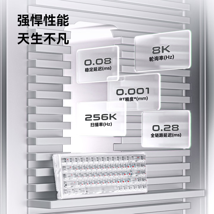 参数好看,实际体验如何?这得从它的“心脏”说起。RS6+搭载了ATK自研的第三代烈风Ultra磁轴方案,支持8KHz轮询率与32KHz全键扫描率。这一套组合拳下来,最终实现了0.08ms的传输延迟和0.28ms的全链路延迟。对于《无畏契约》、《CS2》这类分秒必争的FPS游戏而言,这种级别的延迟提升,带来的操作跟手性变化是能被敏锐感知的。