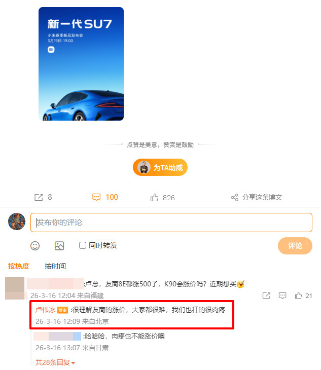 最近科技圈的焦点话题,绕不开“涨价”两个字。有细心网友在小米集团合伙人卢伟冰的微博下直接提问:Redmi K90会不会跟进涨价?卢总的回复很实在:“很理解友商的涨价,大家都很难,我们也扛的很肉疼。”这句大实话,多少道出了当前手机行业面临的普遍困境。