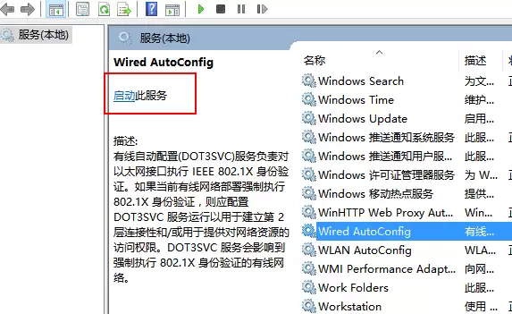 7. 拖动右侧的滚动条,在长长的服务列表里找到名为“Wired AutoConfig”的服务。点击选中它,左侧会显示该服务的描述。最关键的一步是:点击左侧的【启动此服务】。这个服务管理着有线网络的自动配置,它如果没启动,有线网卡可能就无法正常工作。