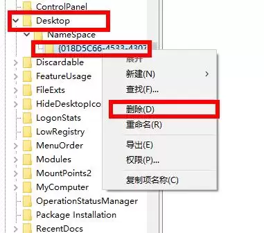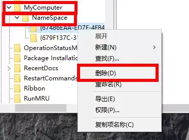第六步,重复第四步的操作:在“NameSpace”下找到代表WPS网盘的子项(通常与上一步删除的项名称相同或类似),右键点击并选择“删除”。
