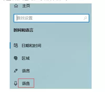 进入“时间和语言”界面后,注意看左侧的菜单栏,点击其中的“语音”选项。