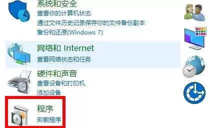 2. 进入控制面板窗口后,将查看方式设置为“类别”,然后找到并点击 【程序】 这个分类。