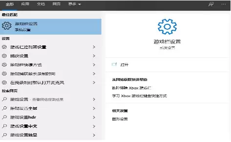 1. 首先,点击屏幕左下角的搜索框,输入“游戏”二字,然后选择打开“游戏栏设置”。