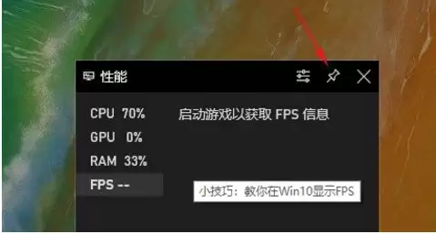 6. 完成上一步后,需要重启一下电脑。重启后,再次按下Win+G打开游戏栏。这次,你可以将“性能”模块(特别是FPS小窗口)拖拽到屏幕上一个不碍眼但又方便观看的位置。然后,点击窗口右上角的“图钉”图标,把它锁定在屏幕上。