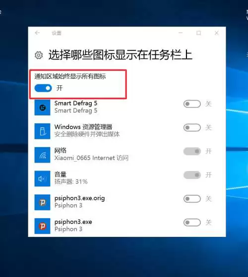 进入之后,页面顶部有一个最重要的开关——“通知区域始终显示所有图标”。这个开关默认是关闭的,所以图标才会被折叠。现在,你只需要将它点开,状态变为“开”即可。