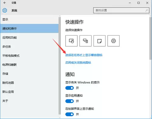 在“通知和操作”页面的右侧,你会看到“快速操作”等相关设置。往下滑动一点,找到“选择在任务栏上显示哪些图标”这个链接,点击它。这里就是控制所有图标显示行为的“总指挥部”。