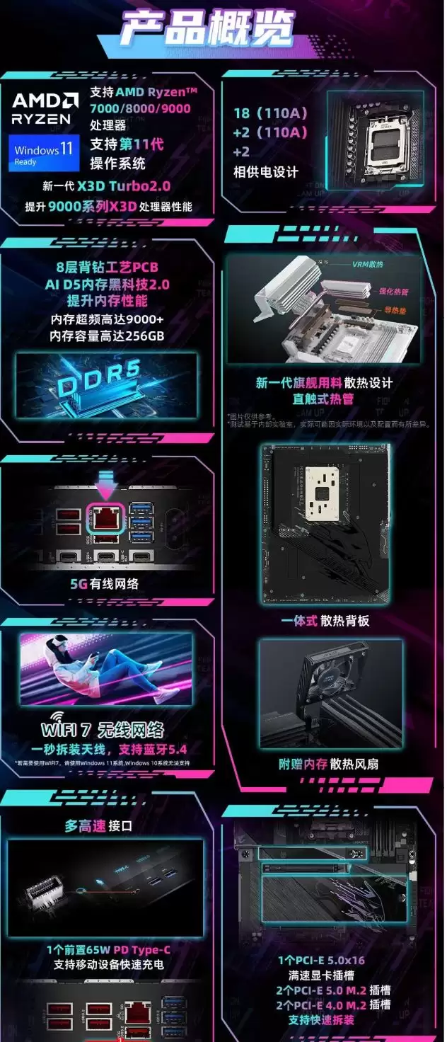 扩展性方面同样拉满,不仅全面兼容 PCIe 5.0 显卡与高速固态,更标配了双 USB4 (40Gbps) 高速接口、Wi-Fi 7 无线网卡以及一系列免工具快拆设计(EZ-Latch Plus)。搭配电竞级沉浸音效方案,618 预热期间入手,一站式为你筑牢高端 AMD 游戏主机的旗舰基石。