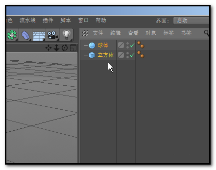 对话框关闭后,你会发现坐标轴默认显示在了立方体上。如果想让它显示在球体上,该怎么办?很简单:在界面右上方的对象面板中,点开刚才创建的“组”,展开下面的球体和立方体列表,然后用鼠标点击一下“球体”。瞧,坐标轴瞬间就切换过去了。同理,再点一下立方体,坐标轴又会回到立方体上。
