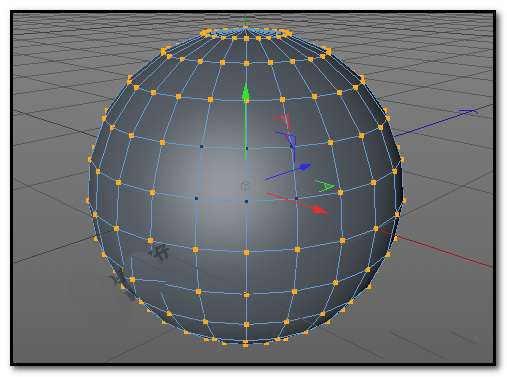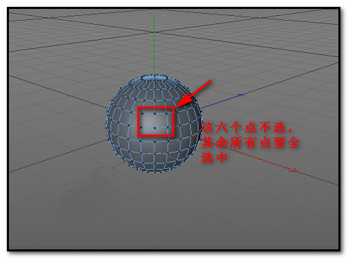 接下来,假设我们有一个明确的需求:需要选中球体上除了指定六个点之外的所有顶点。这个场景在建模中很常见,比如需要对局部区域进行保护性操作时。