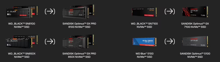 Optimus(基础款): 主打主流性能与高性价比,可以看作是原先WD Blue系列的继承者。它非常适合内容创作者和日常办公用户,采用PCIe 4.0接口,提供1TB到2TB容量选择,最高顺序读取速度能达到7100MB/s。