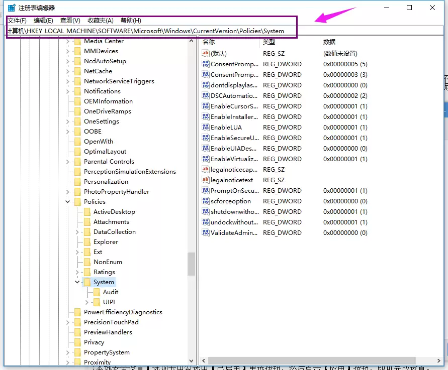 在注册表编辑器左侧的导航栏中,你需要像走迷宫一样,依次定位并展开以下路径:【HKEY_LOCAL_MACHINE】>【SOFTWARE】>【Microsoft】>【Windows】>【CurrentVersion】>【Policies】>【System】。