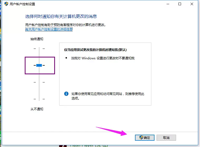 最后必须特别提醒一句:修改系统账户控制设置后,如果你未来想恢复系统默认的安全级别,也是有办法的。只需打开控制面板,进入【系统和安全】下的【更改用户账户控制设置】,将那个安全滑块重新调整回默认推荐的位置,最后点击确定即可。