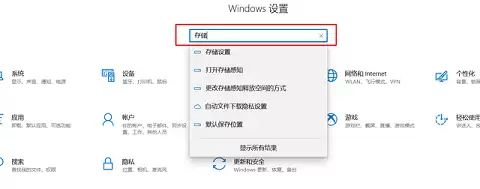 进入设置后,在上方的搜索框里直接输入“存储设置”并打开它。
