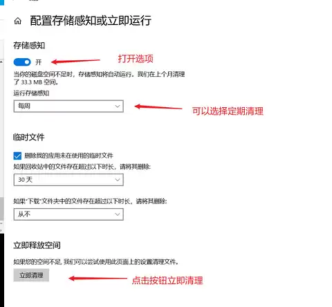 接着,你会看到“配置存储感知或立即运行”的选项,点击进入。