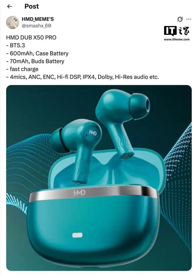 您的位置:首页 >HMD DUB X50 PRO耳机现身:Hi-Res金标认证、续航至高60小时