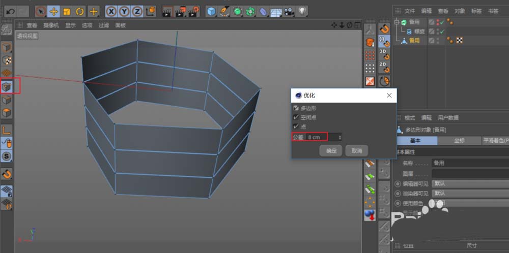 第三步,开始精细处理转换得到的这个多边形对象。首先,使用“点优化”功能,并设置一个合适的“公差”值。这个值的大小需要边看着模型边调整,目的很明确:让那些本该连接却分开的点焊接在一起。用优化来焊接能一次性处理所有分散的点,但切记数值不要过大,如果把所有点都焊成一团,那就彻底失败了。