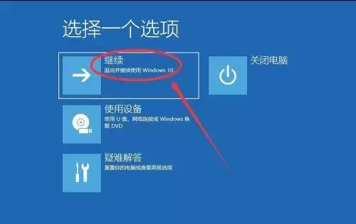 最后,你会返回到高级启动界面。点击“继续”,系统将再次重启。这次重启之后,应该就能正常进入Windows桌面了。
