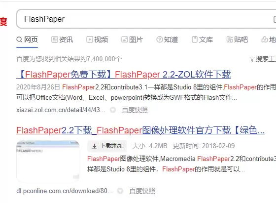 4、如果完成以上步骤后,电脑依然搜不到打印机,那咱们可以换个思路,尝试添加一个虚拟打印机作为“桥梁”。先打开浏览器,搜索并下载 **FlashPaper** 这个工具。