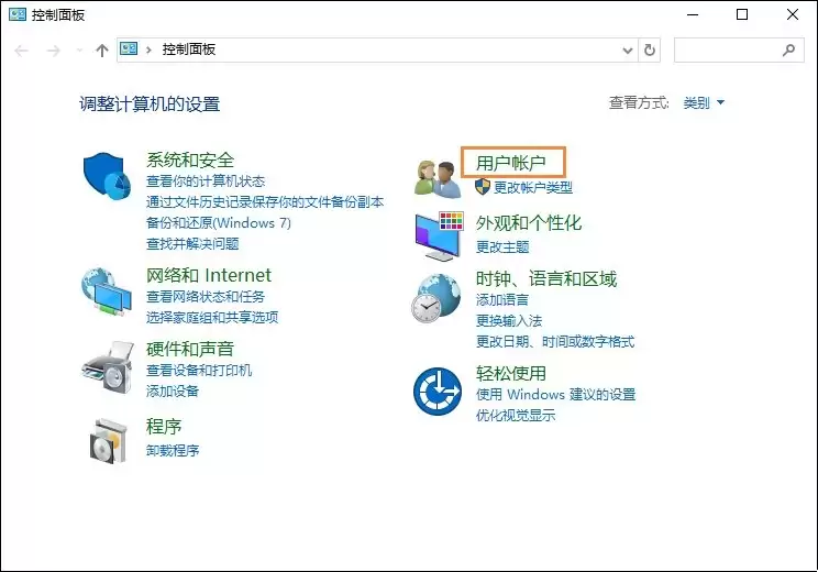 进入控制面板后,你会看到很多设置选项。这里我们需要找到并点击“用户帐户”这个分类。