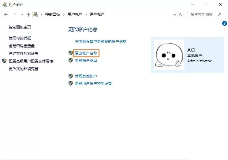 现在,关键选项出现了。在账户管理页面里,仔细找一下,会发现一个名为“更改帐户名称”的链接。没错,就是它,点击进入。