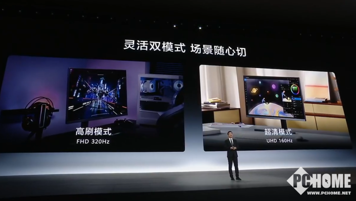 而对于追求极致细节和画质的用户,“超清版”则是不二之选。它直接配备了4K分辨率,并将刷新率提升至160Hz。更值得一提的是,它支持UHD 160Hz与FHD 320Hz的双模切换功能。简单来说,你可以在需要精细画面的影音剪辑时享受4K的细腻,在追求极致帧率的电竞游戏中一键切换至1080P分辨率下的320Hz刷新率,真正实现了画质与速度的自主权衡。