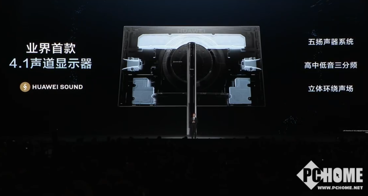 显示器的音响系统常常是“听个响”的存在,但华&为MateView GT试图改变这一观念。它搭载了通过华&为悦彰(HUAWEI SOUND)认证的音响系统,采用了少见的4.1声道三分频设计,内置了多达五个扬声器单元。
