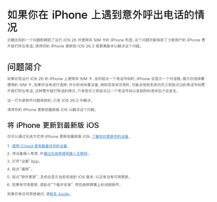 苹果已经在后续的iOS 26.3更新中修复了这个问题。因此,解决方式非常直接:将你的iPhone系统升级到最新版本,即可彻底避免此类意外呼叫再次发生。确保设备自动更新开启,或者手动检查一下系统更新,通常就能一劳永逸。