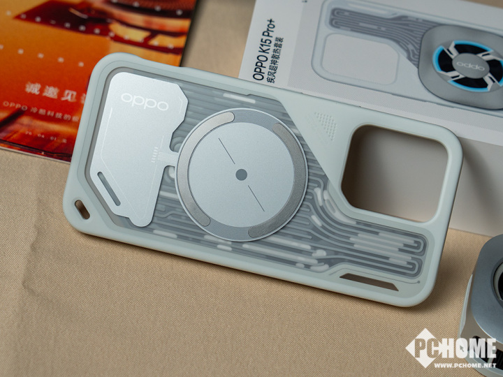 仔细研究这套散热套装,能发现OPPO在细节上花了心思。主动散热背夹上设计有两个金属触点,恰好能与手机壳内侧的金属条对接。这个设计的关键在于,它并非单纯给背夹供电,而是通过触点驱动手机壳内置的微泵,让冷却液在整个手机壳背部循环流动起来。