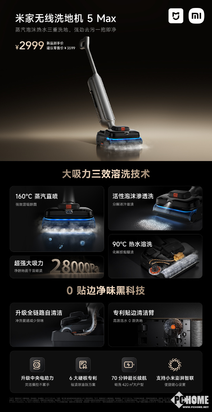 总的来说,米家无线洗地机5 Max通过高温蒸汽、活性泡沫和热水这三种核心清洁手段,配合强大的吸力与完善的自清洁系统,展现出解决家庭地面深度清洁痛点的全面思路。对于追求高效、彻底清洁体验的用户来说,这无疑提供了一个值得关注的新选择。