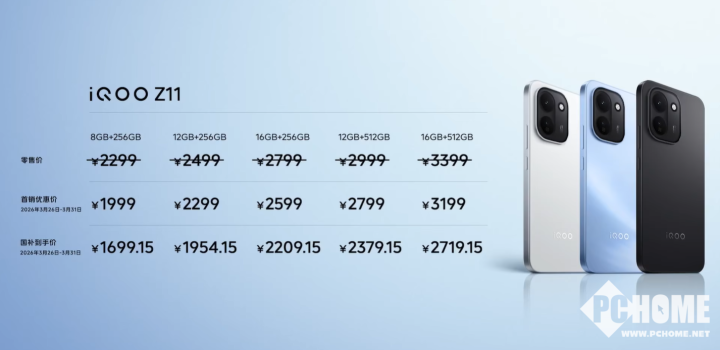 先来看看大家最关心的价格。iQOO Z11提供了相当丰富的存储组合,其首销定价如下:8GB+256GB版本为1999元,12GB+256GB版本为2299元,12GB+512GB版本为2799元,16GB+256GB版本为2599元,而顶配的16GB+512GB版本则为3199元。