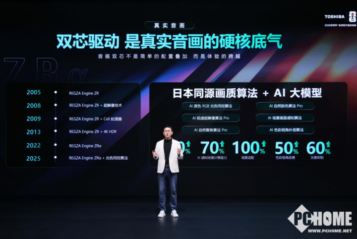 这套双芯体系并非一蹴而就。画质处理单元从REGZA Engine ZR开始奠基,历经二十年迭代至今天的ZRα架构;音频处理单元则从BR引擎问世,演进至整合了8声道独立驱动、Eilex音效算法及AI音效自适应算法的BRα架构。两者的协同进化,构成了东芝“真实音画”难以被复制的核心技术底座。