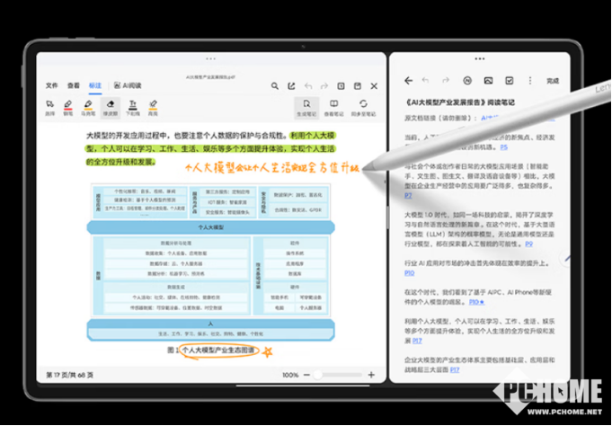 在目前最热门的AI能力上,小新Pro GT 13也带来了差异化的思考。它率先支持在端侧一键部署名为OpenClaw的大模型。简单说,就是不需要联网,在设备本地就能运行AI功能。好处显而易见:响应速度更快,数据隐私也更安全,不用担心信息上传到云端。更重要的是,它的AI功能并非炫技,而是深入到了具体场景里。例如,针对大学生的学习痛点,专门定制了课堂笔记智能整理功能。它能自动识别手写批注,将图片和文字智能融合,再联动AI妙记等工具,一键就能生成结构清晰、重点突出的复习笔记。这无疑是将AI能力真正转化为了学习效率的提升。