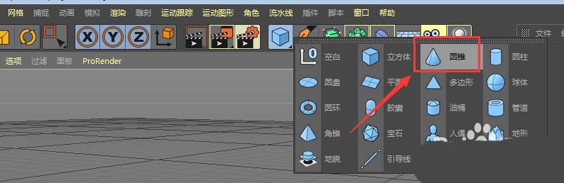 第一步,咱们从基础模型开始。在场景里创建一个圆锥体,这是构建伞面雏形的关键。效果可以参考上图。