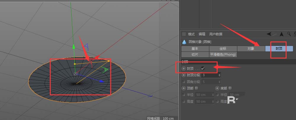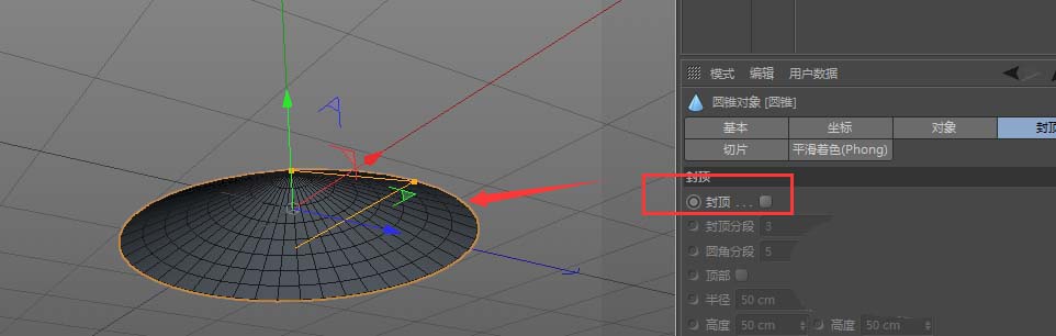 现在,伞的外形是有了,但内部还是实心的,这显然不对。解决起来很简单:在“对象属性”中找到“封顶”选项,把“顶端”和“末端”的封顶都勾选上。这一步操作能让锥体的中间部分立刻变得镂空,伞的大致形态就出来了。