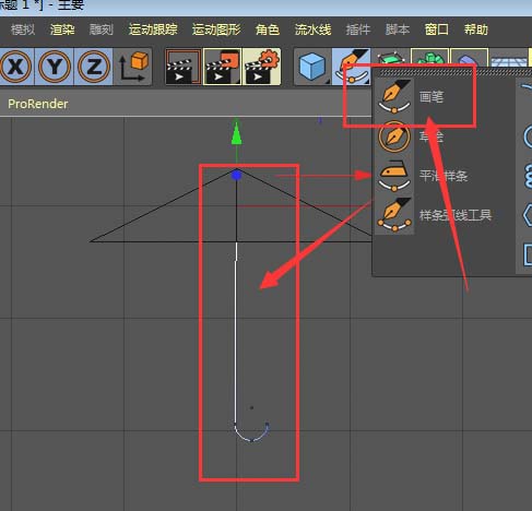伞面有了,接下来是伞柄。切换到“画笔工具”,在视图中画出一条代表伞柄弯曲路径的线条。别忘了,好的伞柄通常有一个优雅的弧度,这一步就是塑造那个弧度的关键。