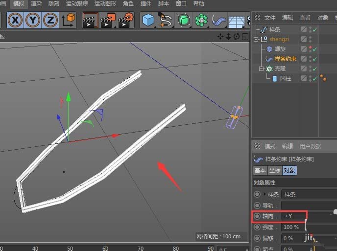 绳子总不能一直是笔直的螺旋吧?是时候赋予它自定义的路径了。使用样条工具,绘制任意你想要的曲线形状。