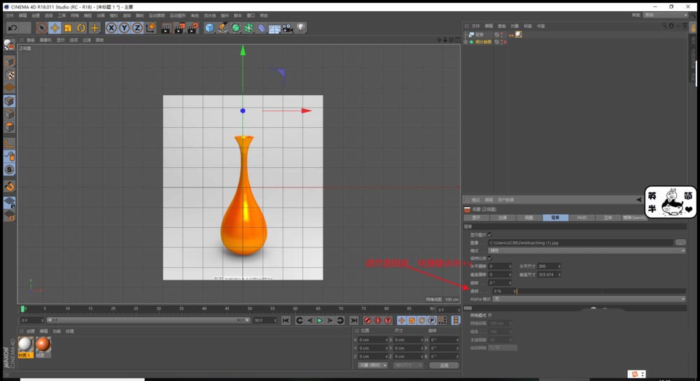 准备好参考图后,直接把它拖进 C4D 的正视图窗口。如果图片太亮影响描线,别担心,按 Shift+V 调出视图设置,在“背景”选项卡里轻松调节透明度,让参考图处于一个最舒适的显示状态。