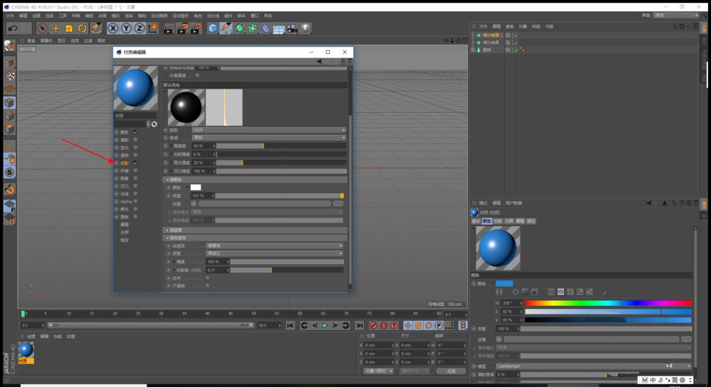 瓶子之所以看起来像瓶子,反光质感至关重要。接着,我们调整“反射”通道。陶瓷或玻璃表面都有特定的高光属性,在这里添加一层反射(比如 GGX 或传统的反射层),并适当调整亮度、粗糙度等参数,质感马上就出来了。最后,简单地把调好的材质球拖到瓶体模型上,一个基础而完整的三维瓶子就诞生了。