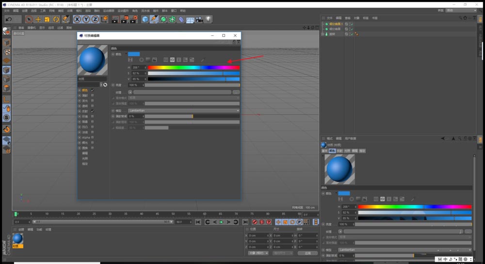 模型有了,就该上色赋材质了。在材质管理器双击创建新材质,双击材质球打开编辑器。第一步通常是定义颜色,在“颜色”通道中选择你想要的釉色或玻璃色。