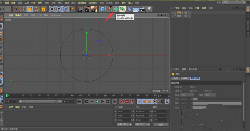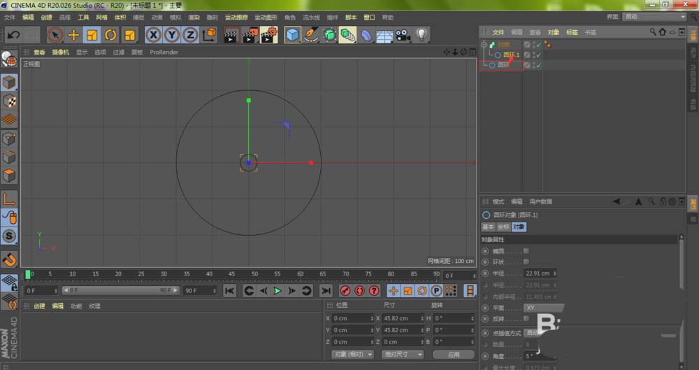 确保当前工具是“画笔”相关状态,在正视图中再次点击,创建第二个圆环。这样,我们就有了“圆环”和“圆环1”两个基础图形。