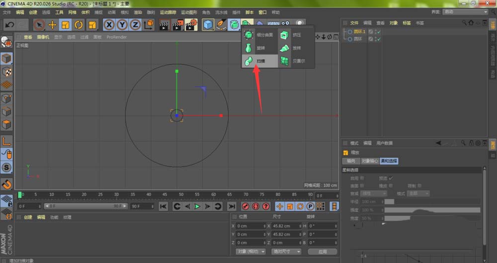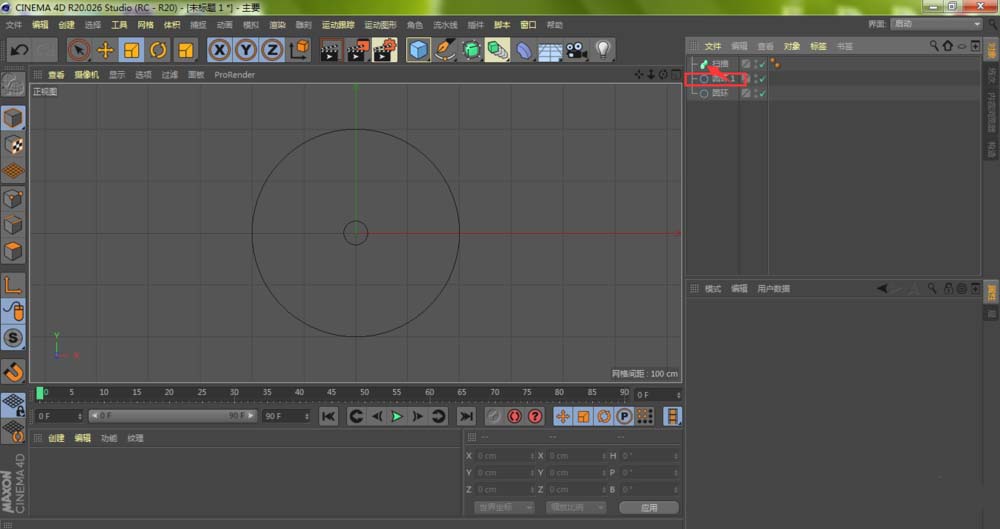 紧接着,用同样的方法,将最初的、大的那个“圆环”对象,拖拽到“圆环1”的同一层级下,也就是作为“扫描”的第二个子对象,与“圆环1”形成平级关系。这个大的圆环,则被自动识别为扫描的“路径”。