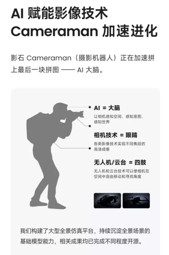 刘靖康将2025年定义为公司成立以来“能力增长最快、最全面的一年”。他首次系统阐述了公司的长期技术愿景:打造能够媲美专业摄影师的全自动“摄影机器人”。过去六年,公司在相机硬件、影像算法、无人机与云台等相当于机器人“躯体能力”的方面已完成积累。未来的重点,将是投入AI算法与定制芯片研发,加速补齐那个至关重要的“AI大脑”。