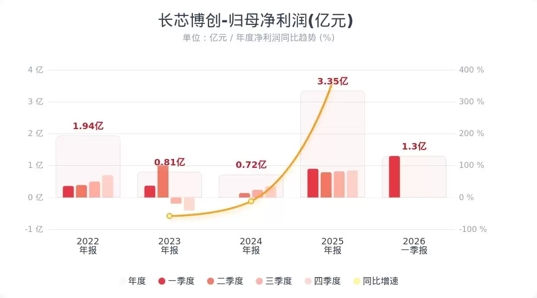 市场刚刚迎来一份亮眼的成绩单。长芯博创(300548.SZ)于4月28日发布的公告显示,公司在2026年第一季度交出了一份堪称强劲的答卷。具体来看,其营业收入达到了6.71亿元,与去年同期相比,增幅为24.53%。更值得关注的是盈利能力的跃升——归属于上市公司股东的净利润为1.30亿元,同比增速高达45.00%。