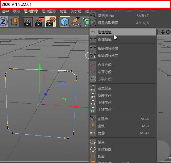 此时,矩形每个角上的点都会显示出来。将这些点全选,然后右键点击,从弹出的上下文菜单中选择“刚性插值”。