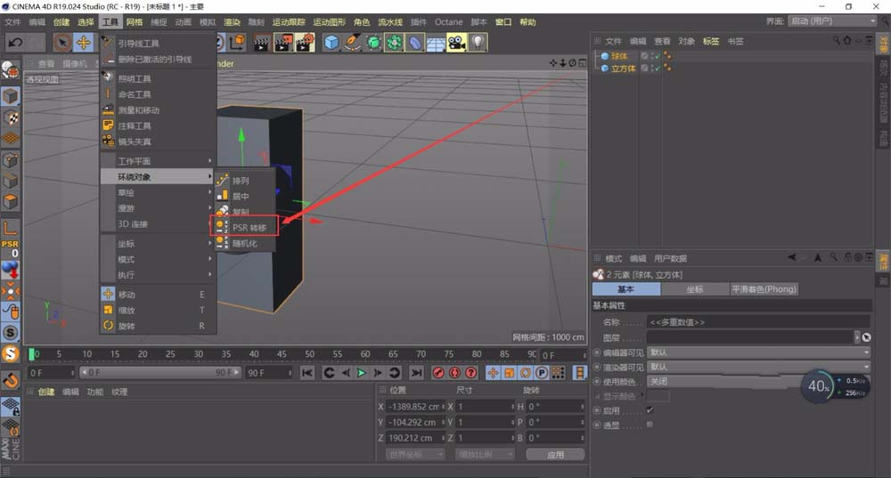 在下拉菜单中,找到【环绕对象】这一项,然后在它的次级菜单里,选择【PSR转移】。这个工具就是咱们今天要用的“对齐神器”。
