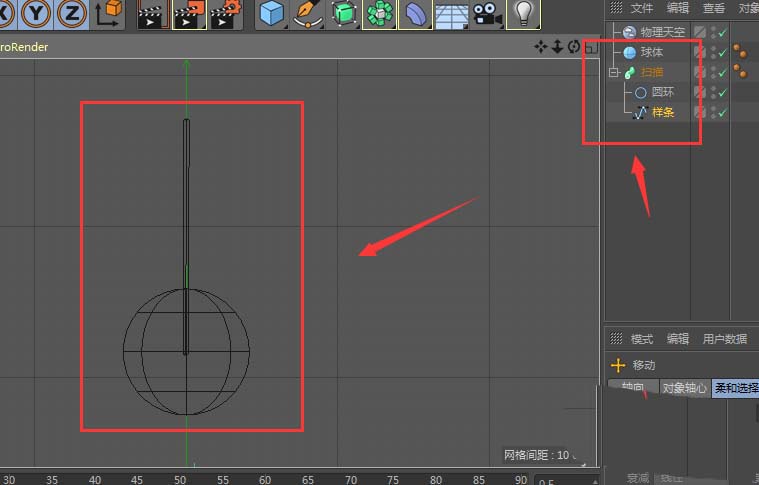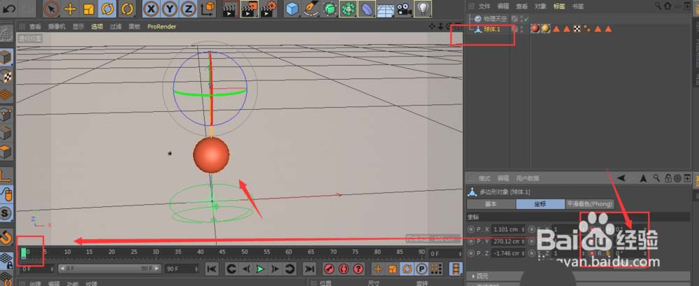 光有杆子不够,还得有摆锤。在场景中新建一个球体,作为钟摆锤。这时候,切换到正视图非常重要,它能帮你精确地将球体与杆子的底端中心对齐。别忘了多切换几个视图(比如顶视图、右视图)检查一下,确保它们在三维空间里完全对正。