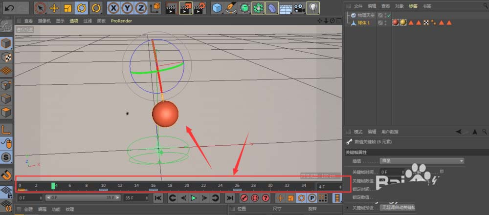 准备工作全部就绪,现在可以动起来了。把时间线指针拖到第0帧,在属性面板中找到旋转参数。假设我们希望钟摆从最右边开始摆动,那就先将模型沿Z轴旋转一个角度(例如30度)。然后,点击旋转参数旁边的关键帧记录点,打下第一个关键帧。